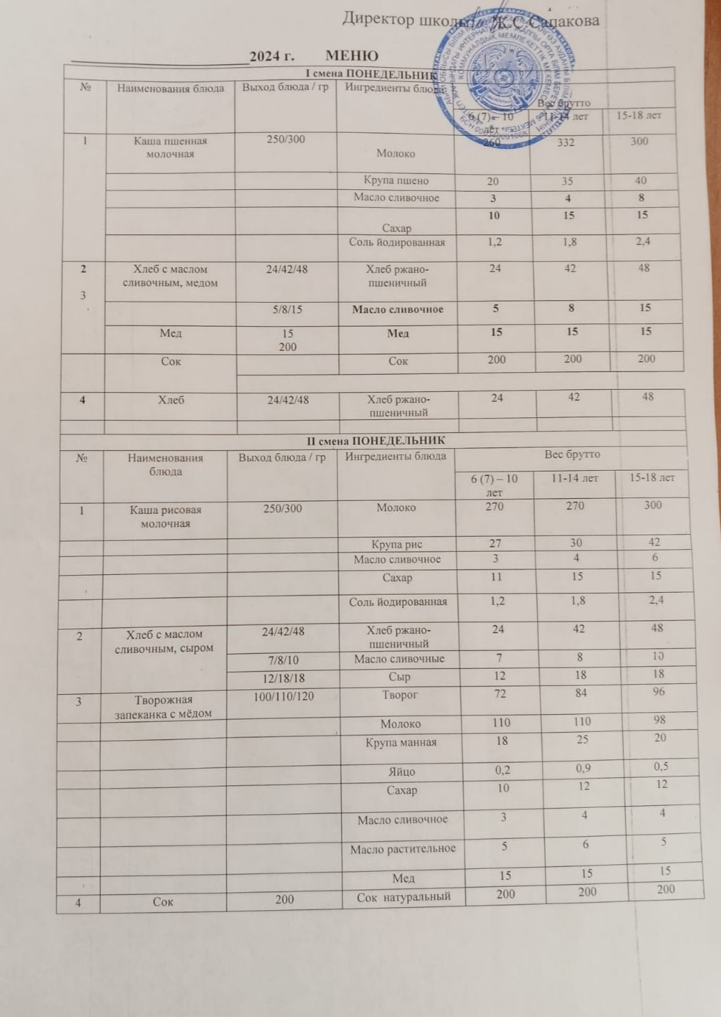 Күн мәзіріне берілетін ыстық тамақ 29.04.2024
