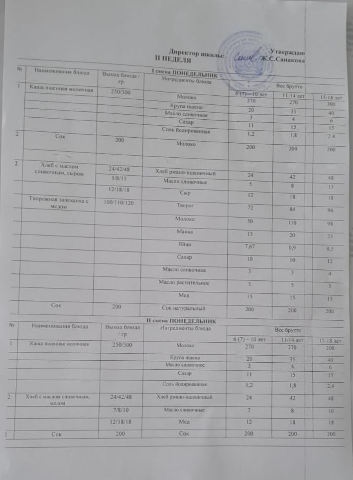 Күн мәзіріне берілетін ыстық тамақ 13.05.2024ж