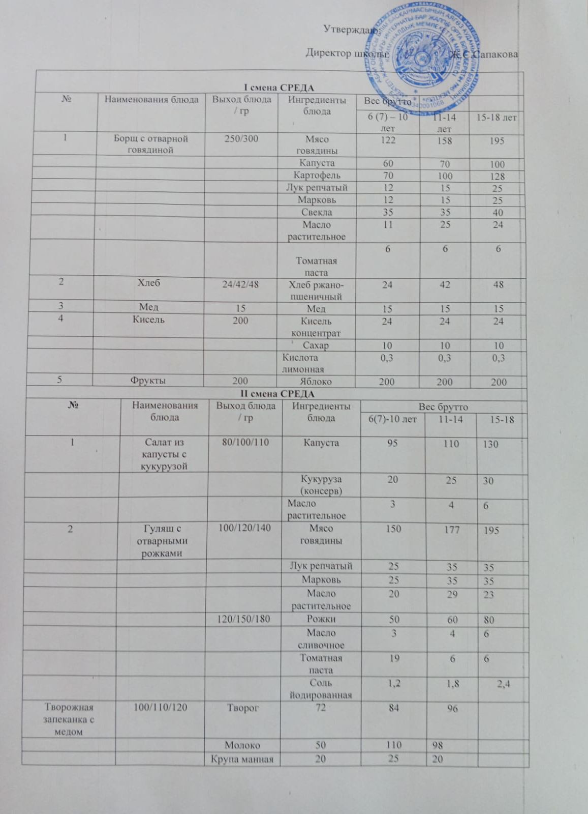 Күн мәзіріне берілетін ыстық тамақ 22.05.2024