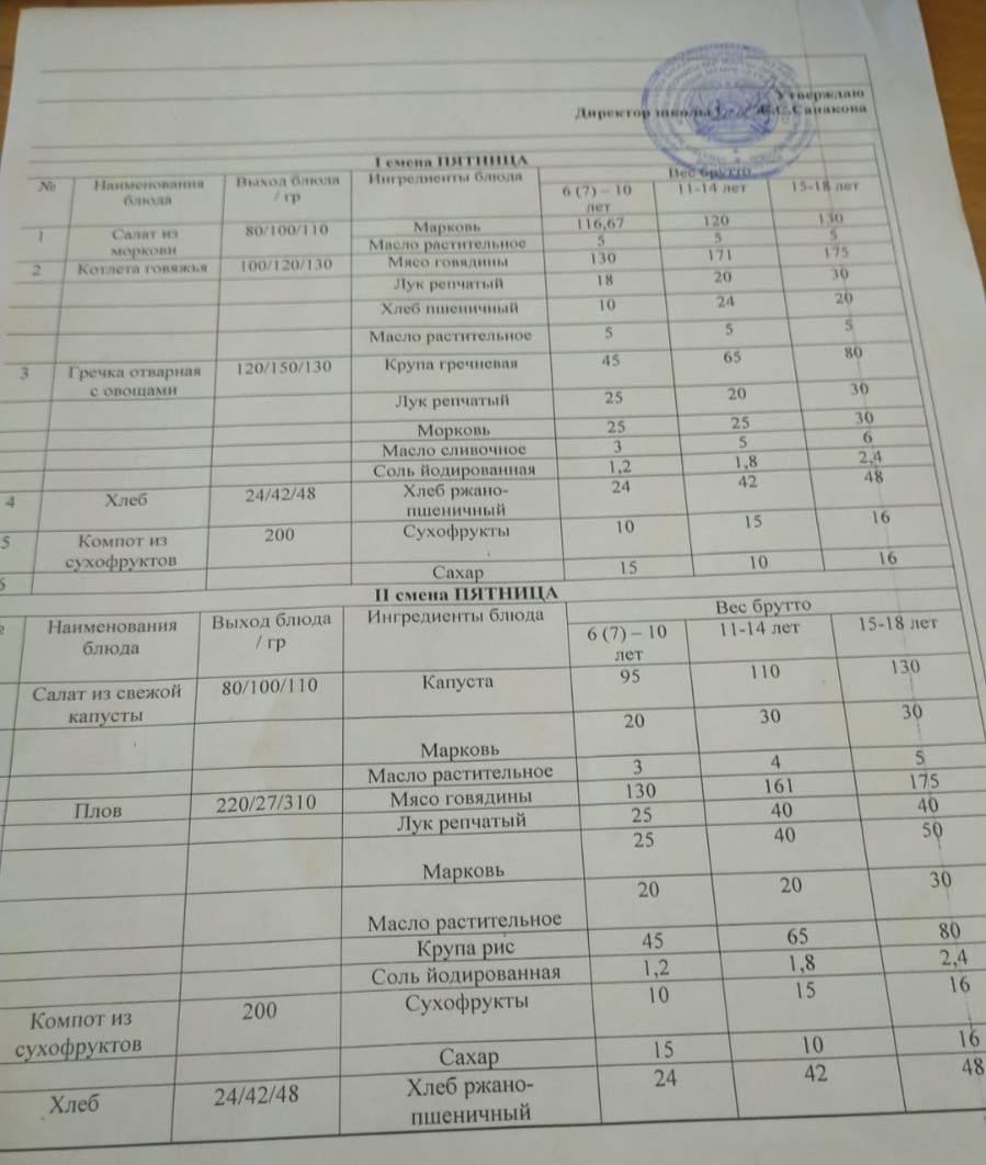 Күн мәзіріне берілетін ыстық тамақ 24.05.2024