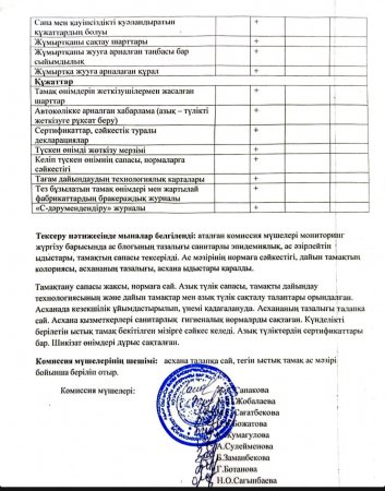 » Тамақтану сапасының мониторинг жүргізу актісі.Хаттамасы