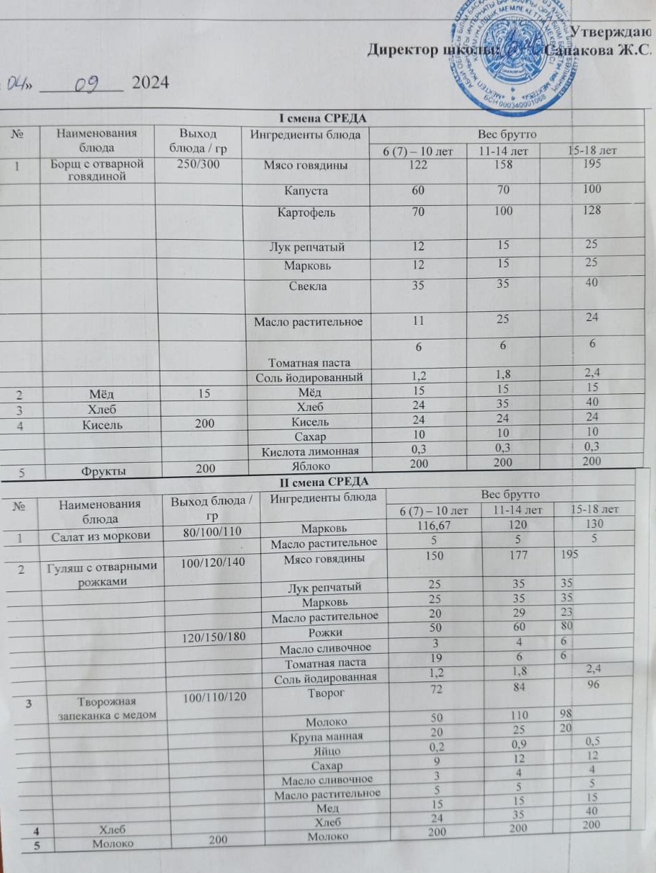 Күн мәзіріне берілетін ыстық тамақ 04.09.24
