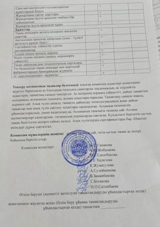 » Тамақтану сапасының мониторинг жүргізу актісі.Хаттамасы
