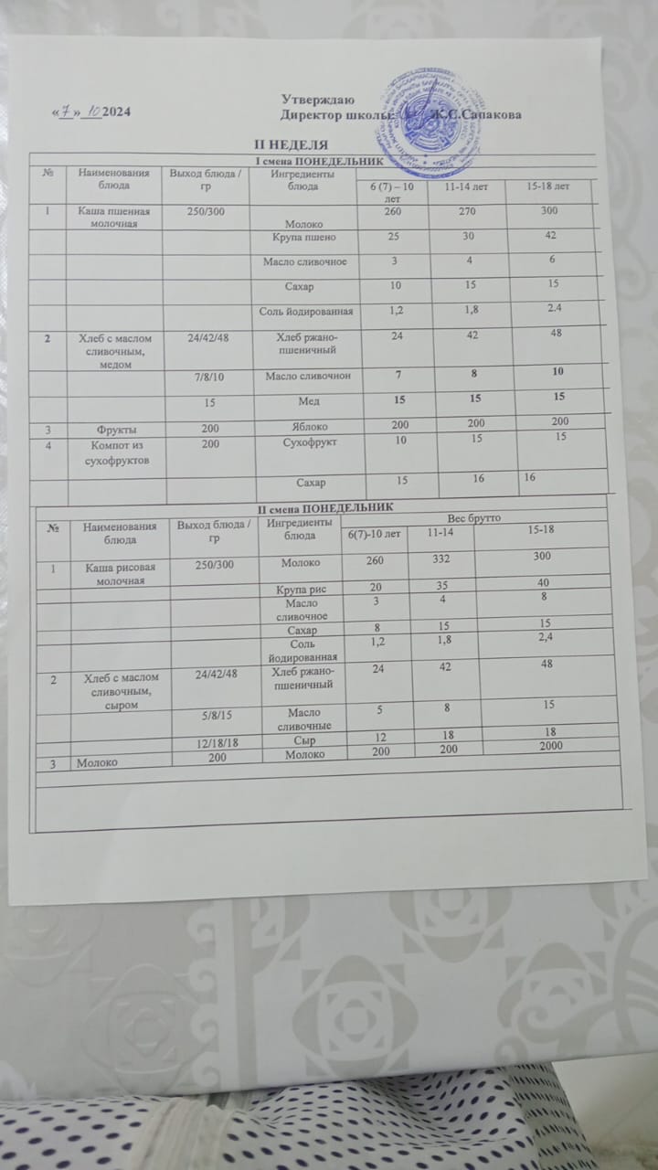 Күн мәзіріне берілетін ыстық тамақ.07.10.2024