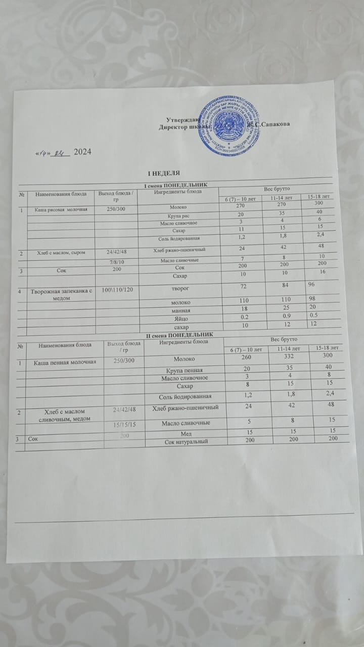 Күн мәзіріне берілетін ыстық тамақ 14.10.2024