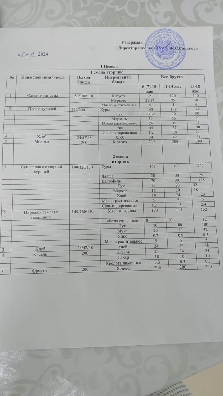 Күн мәзіріне берілетін ыстық тамақ 05.11.2024