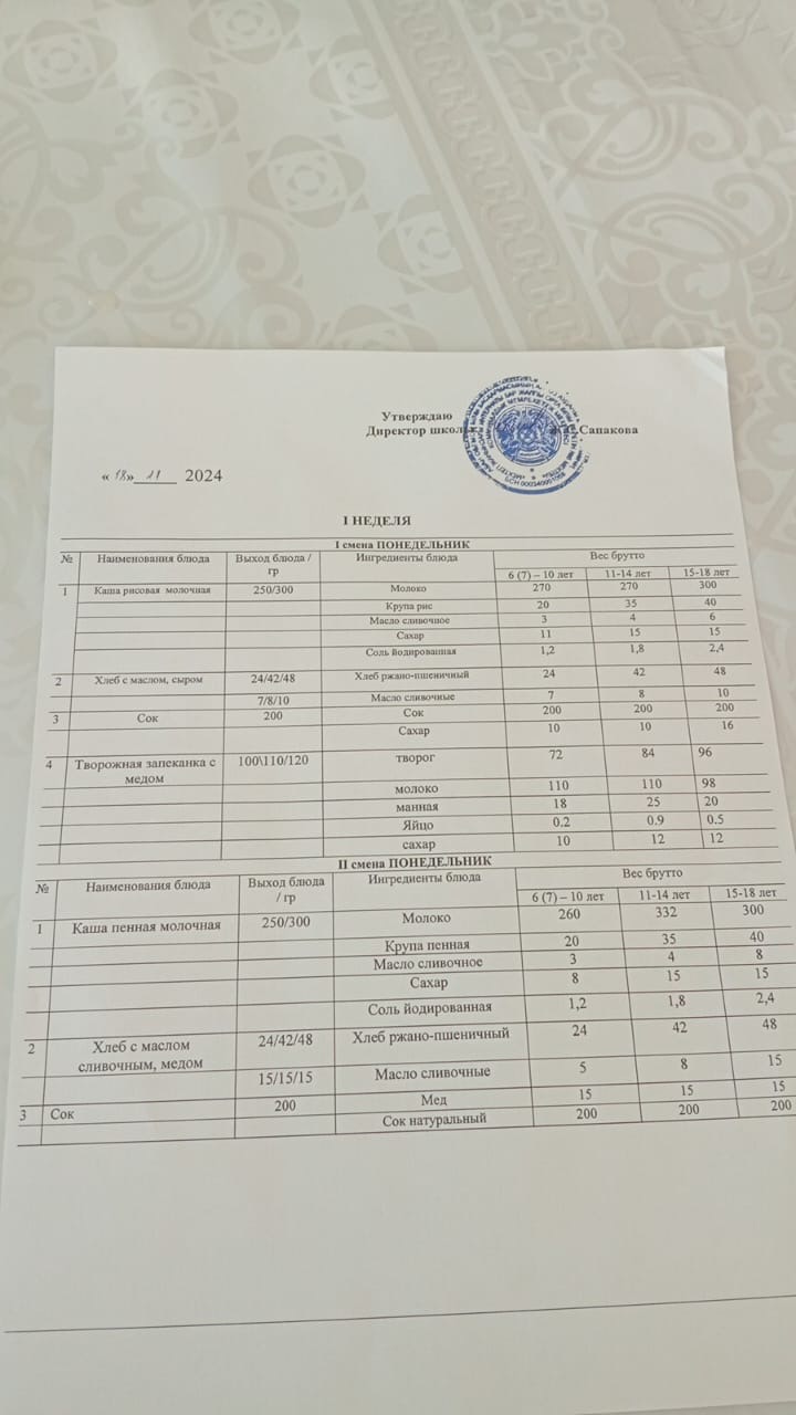 Күн мәзіріне берілетін ыстық тамақ 18.11.2024
