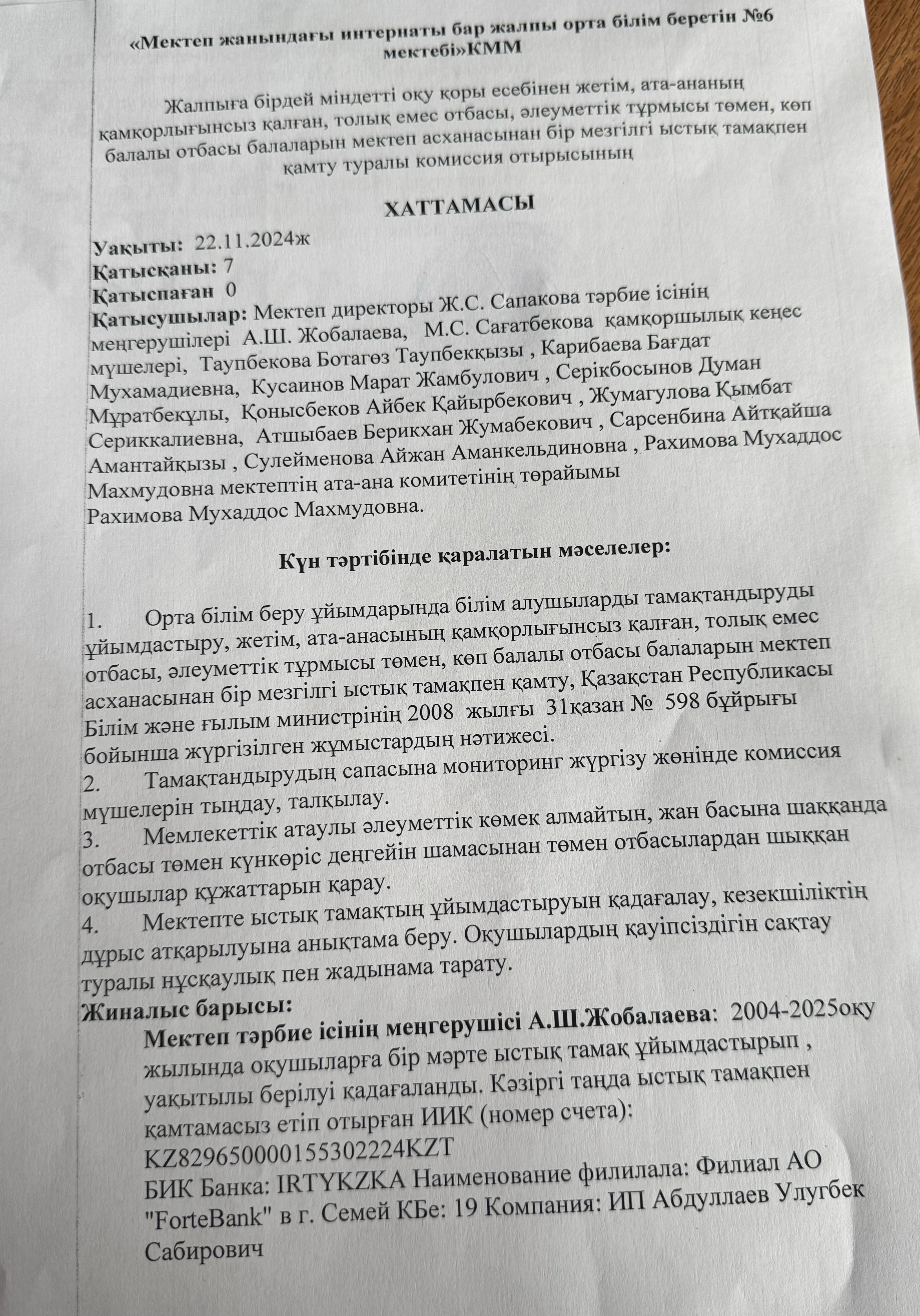 Абай облысы білім басқармасының Аягөз ауданы білім бөлімінің «Мектеп жанындағы интернаты бар жалпы орта білім беретін № 6 мектебі»