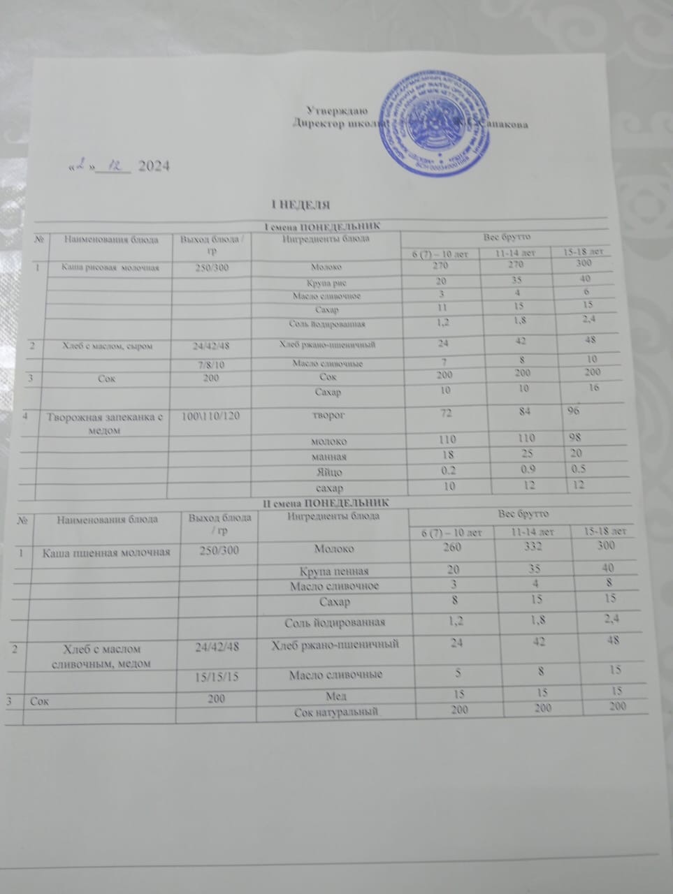 Күн мәзіріне берілетін ыстық тамақ 02.12.2024