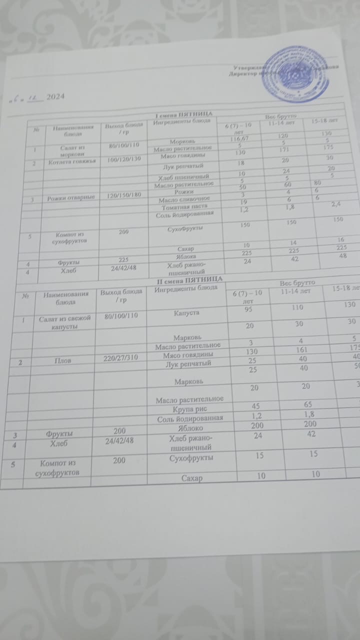 Күн мәзіріне берілетін ыстық тамақ 06.12.2024