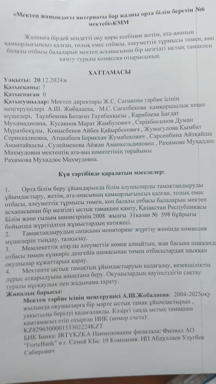 Абай облысы білім басқармасының Аягөз ауданы білім бөлімінің «Мектеп жанындағы интернаты бар жалпы орта білім беретін № 6 мектебі»