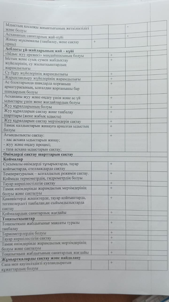 » Тамақтану сапасының мониторинг жүргізу актісі.Хаттамасы