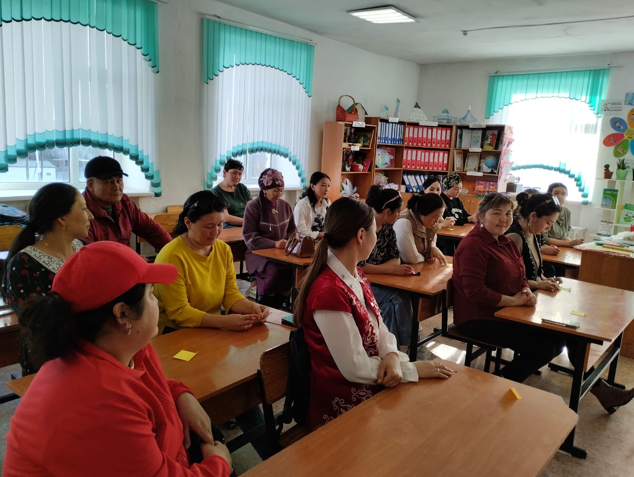 Жиналыста ата-аналарға психологиялық ахуал тудыра отырып, отбасы мүшелеріне позитивті қарым-қатынас тудыру жолын және өзара түсіністік, отбасындағы адами құндылықтарды дамыту жұмыстары жүргізілді