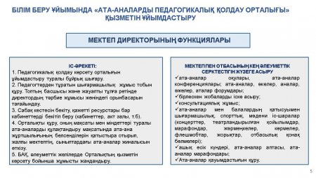 » "Ата-аналарды педагогикалық қолдау орталығы" қызметін ұйымдастыру
