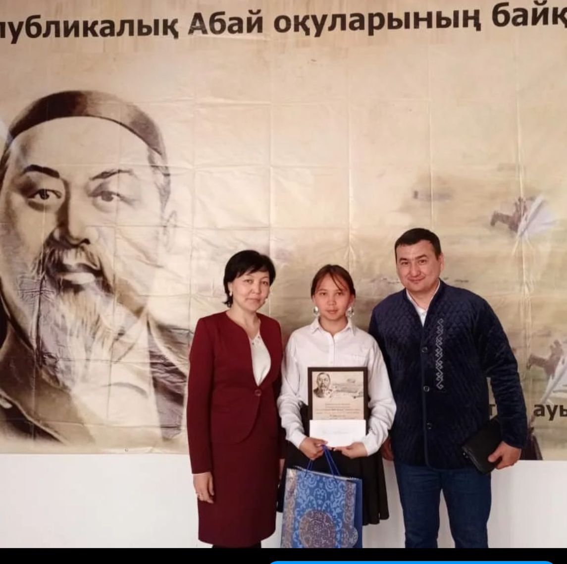 3. «Абайдың ақын шәкірттерінің шығармалары» номинациясы бойынша Шәкерім Құдайбердіұлы, Ақылбай Абайұлы, Мағауия Абайұлы Әріп Тәңірбергенұлы шығармаларын жатқа оқу бойынша 7-сынып оқушысы Қалымова Нұрай қатысып ІІІ орын иеленді