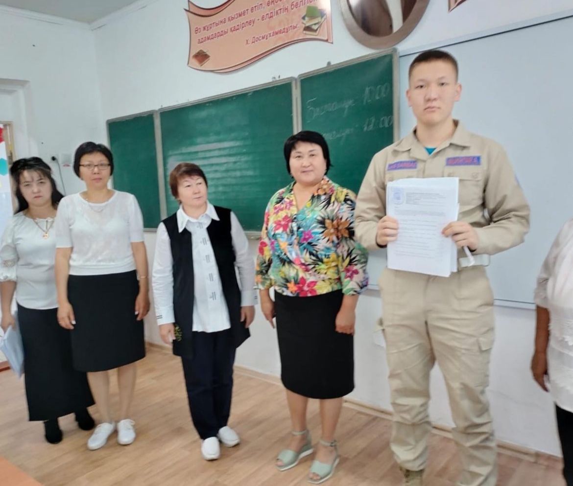15.06.2023 жылы “Мектеп жанындағы интернаты бар жалпы орта білім беретін №6 мектебі “КММ-ның 11-сынып білім алушыларына орыс тілі пәнінен мемлекеттік емтихан өткізілуде.Білім алушылар үлкен сынып бөлмелерінде бір-бірден отырғызылды.Емтиханға 37 оқушы қатысты. Емтихан материалдарының бекітілген пакеттері 9.45-те ашылып, 10.00-де басталып, 13.00-де аяқталады.Аудандық білім бөлімінің әдіскері С.С.Ахметова және мектеп директоры Ж.С.Сапакова балаларға қолдау көрсетіп, сәттілік тіледі.