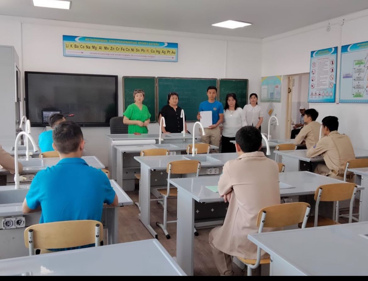 19.06.2023 жылы “Мектеп жанындағы интернаты бар жалпы орта білім беретін №6 мектебі “КММ-ның 11 сынып білім алушыларына дүниежүзі тарих және география пәндерінен мемлекеттік емтихан өткізілуде.Білім алушылар үлкен сынып бөлмелерінде бір-бірден отырғызылды.Емтихан материалдарының бекітілген пакеттері 9.45-те ашылып, 10.00-де басталып, 13.00-де аяқталады.Аудандық білім бөлімінің әдіскері А.Ө.Саңқайбаева және мектеп директоры Ж.С.Сапакова балаларға қолдау көрсетіп, сәттілік тіледі.