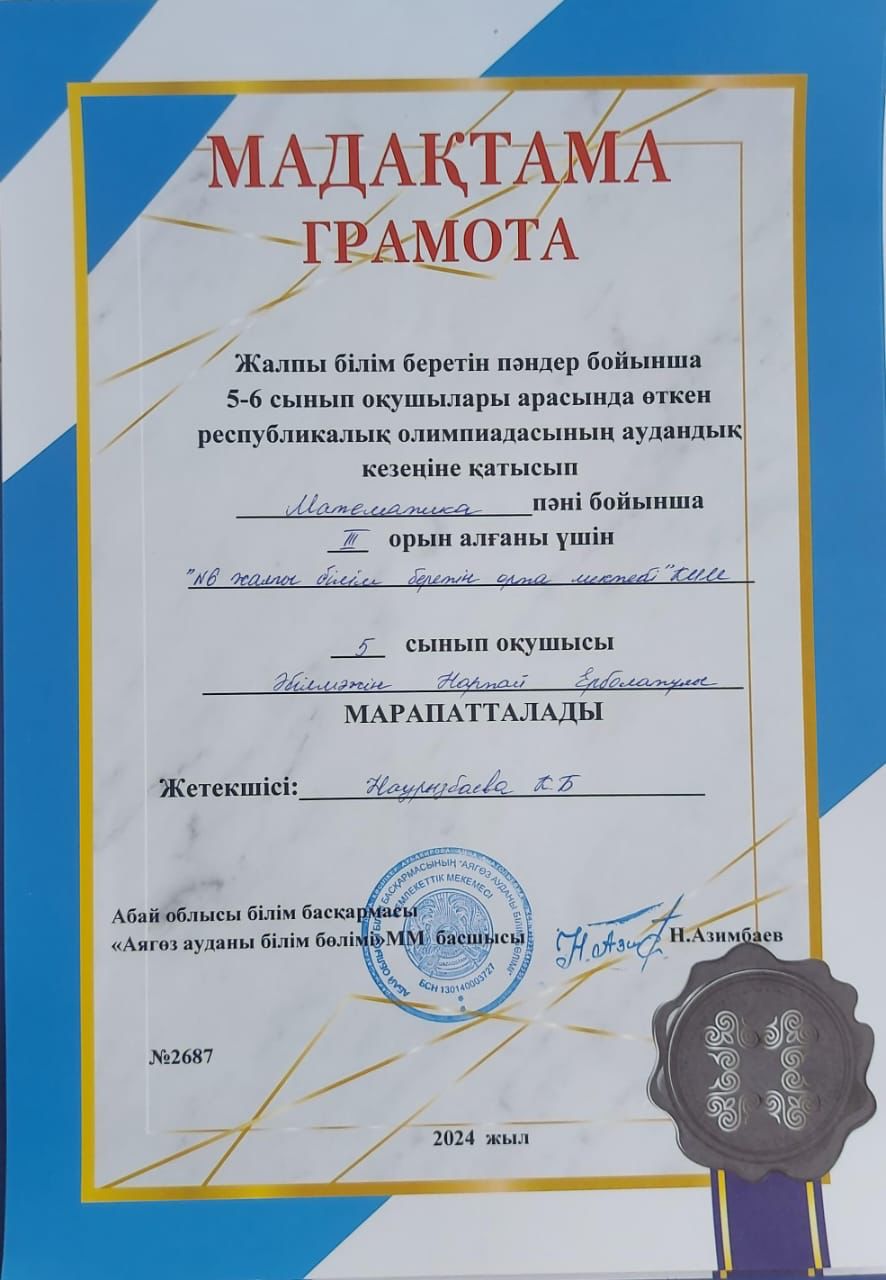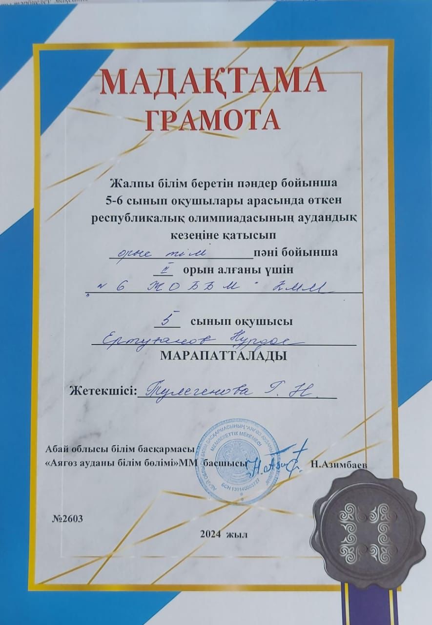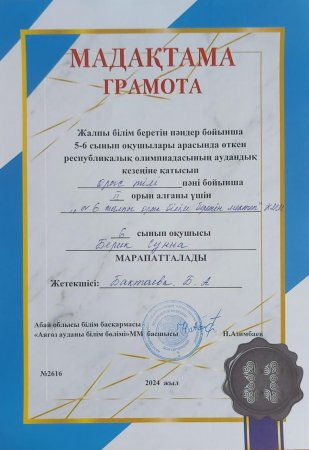 » Жалпы білім беретін пәндер бойынша республикалық олимпиадасының аудандық кезеңінің қорытындысы