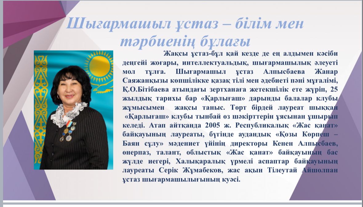 » Шығармашылық ұстаз-білім мен тәрбиенің бұлағы