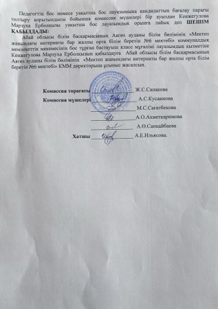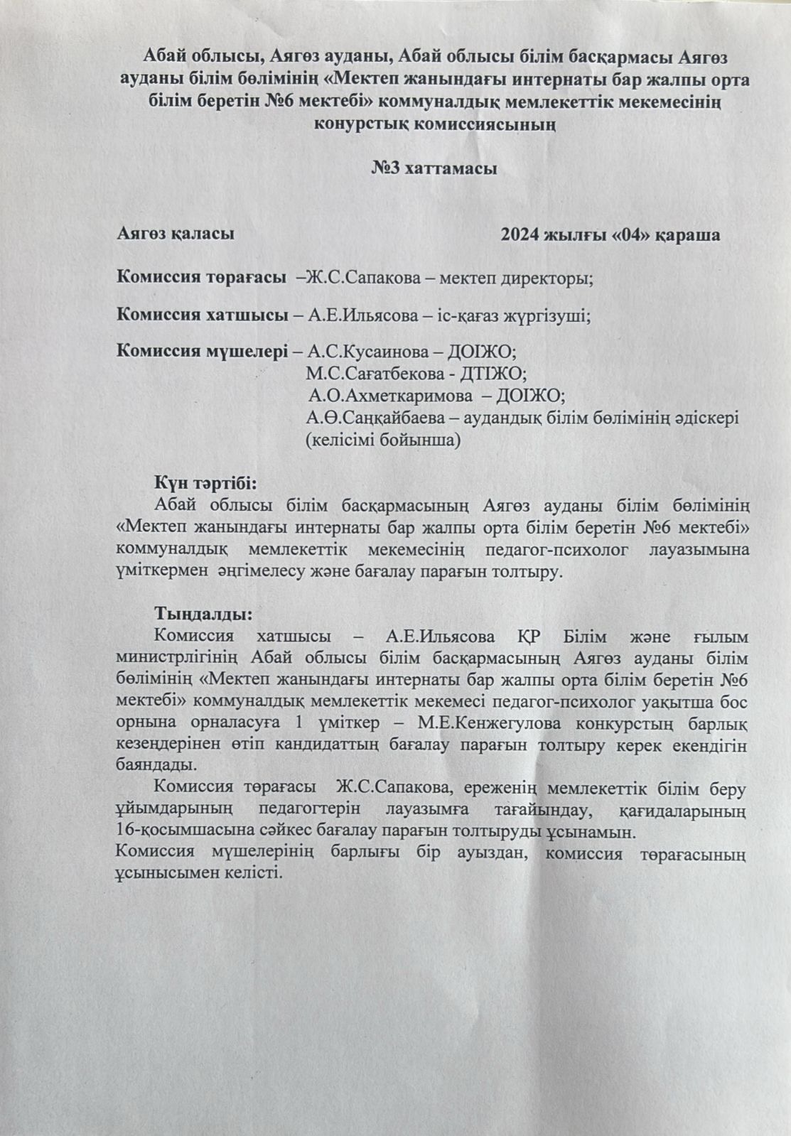 Абай облысы білім басқармасының Аягөз ауданы білім бөлімінің «Мектеп жанындағы интернаты бар жалпы орта білім беретін № 6 мектебі»