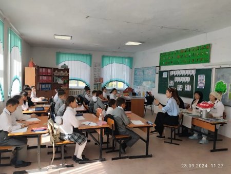 Қыркүйек айы - еңбекқорлық және кәсіби біліктілік айы, сыныбымызда «Еңбек түбі – береке» тақырыбында мектепте қызмет етіп жүрген еңбек адамдарымен кездесу болып өтті. Кездесуге келген мектеп мейірбикесі Нұржанат Көшербайқызы, кітапханашы Гүлвира Балтабекқызы, аспаз Әлия апай және ата-ана Сандуғаш Серікқызы мен домбыра үйірмесінің жетекшісі Дина апай еңбектің адам өміріндегі маңыздылығы, іскерлік дағдыларын дамыту мен еңбекке қызығушылықтарын арттыру туралы айтып өтті. Сынып сағаты 10 минуттық «Көшеде қаңғыбас итті кездестіру» қауіпсіздік сабағымен басталды. Сабақтың құндылығы: еңбекқорлық және кәсіби біліктілік. Білім алушылар ұлы ақын Абайдың дәйексөзі «Еңбек – жай ғана қызмет емес, адам болмысының айнасы» екенін ұғынып алды. «Досыңа кітап сыйла» акциясы бойынша сынып оқушылары кітапханаға «Әріптермен танысу» кітабын ұсынды. Сабақ соңында Дина Қуанышқазықызы «Жан ана» әнін музыкалық сәлеммен жолдады