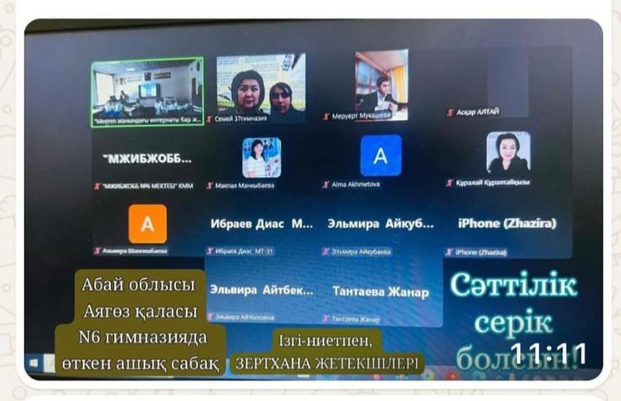 Асель Сергазыевна Қ.О.Бітібаеваның «Ой тастау, ойланту, ойлау» технологиясы арқылы «MS Word мәтіндік процессордағы кестелер» және «Бейнежазба жасау менің қабілетім» тақырыбында Республика көлемінде жоспар бойынша 7 сынып оқушыларымен онлайн сабақ