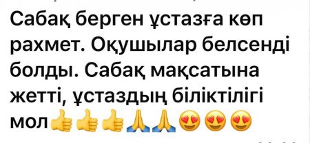 Мектеп сайты » О школе » Методика и опыт » Асель Сергазыевна Қ.О.Бітібаеваның «Ой тастау, ойланту, ойлау» технологиясы арқылы «MS Word мәтіндік процессордағы кестелер» және «Бейнежазба жасау менің қабілетім» тақырыбында Республика көлемінде жоспар бойынша 7 сынып оқушыларымен онлайн сабақ