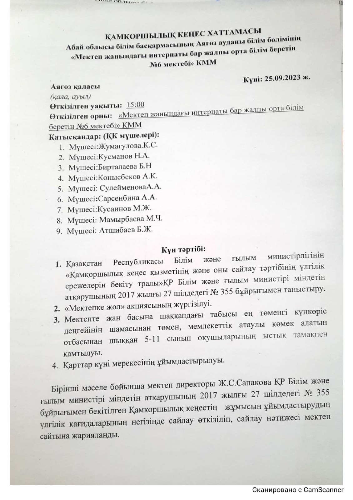 Абай облысы білім басқармасының Аягөз ауданы білім бөлімінің «Мектеп жанындағы интернаты бар жалпы орта білім беретін № 6 мектебі»