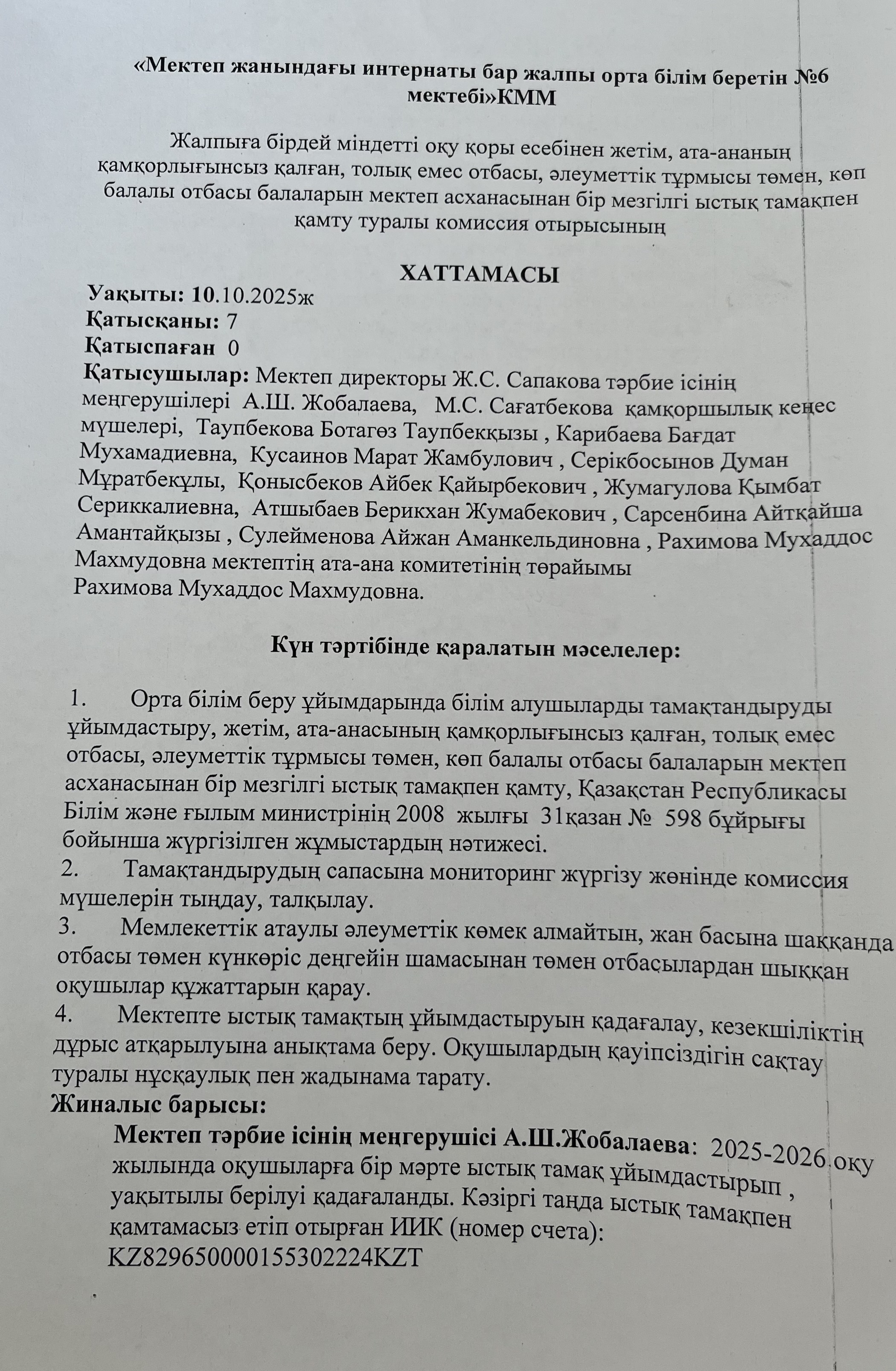 Абай облысы білім басқармасының Аягөз ауданы білім бөлімінің «Мектеп жанындағы интернаты бар жалпы орта білім беретін № 6 мектебі»