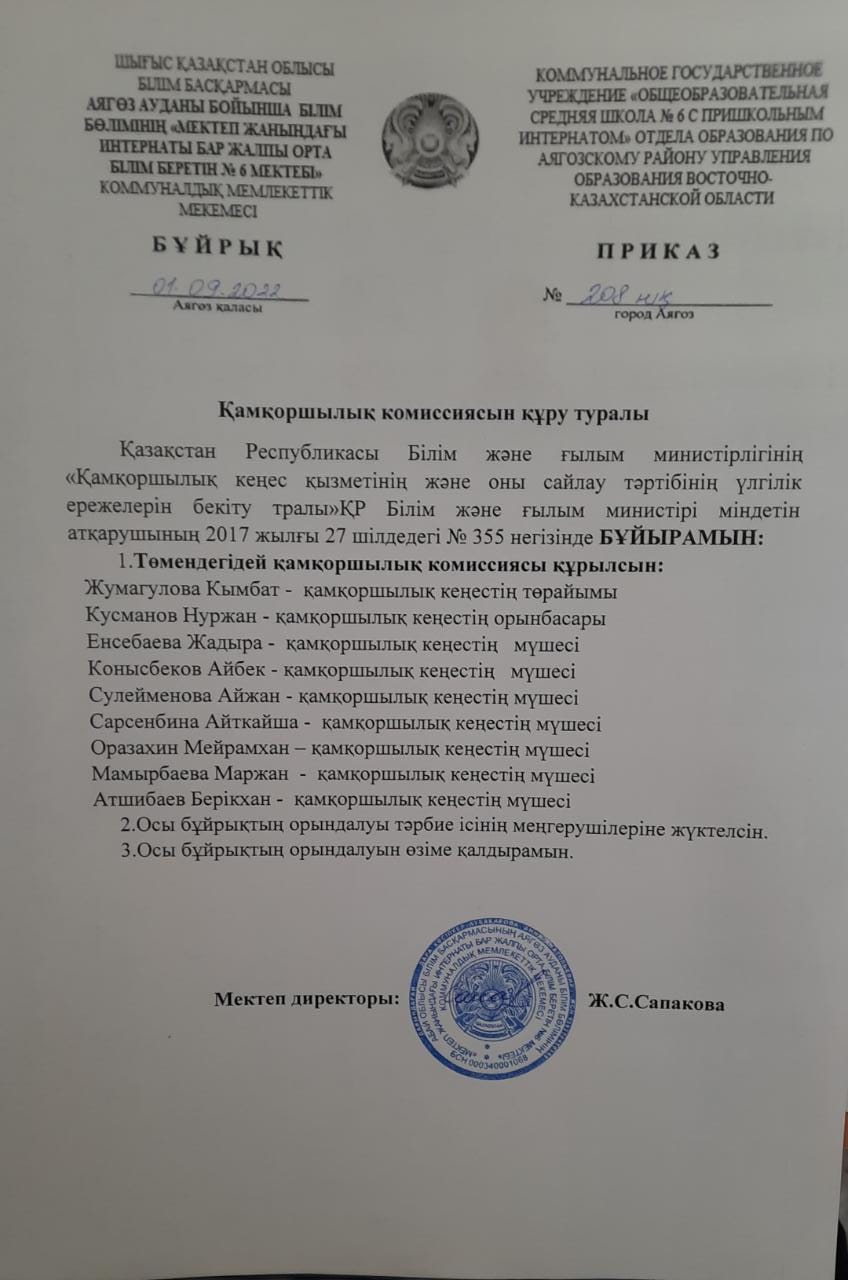 Абай облысы білім басқармасының Аягөз ауданы білім бөлімінің «Мектеп жанындағы интернаты бар жалпы орта білім беретін № 6 мектебі»