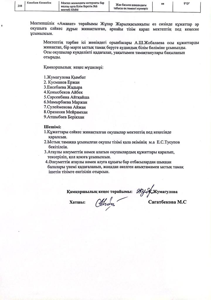 Абай облысы білім басқармасының Аягөз ауданы білім бөлімінің «Мектеп жанындағы интернаты бар жалпы орта білім беретін № 6 мектебі»