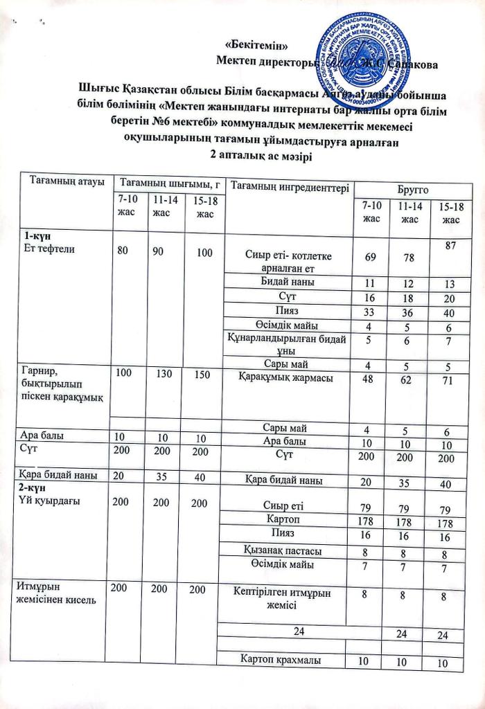Абай облысы білім басқармасының Аягөз ауданы білім бөлімінің «Мектеп жанындағы интернаты бар жалпы орта білім беретін № 6 мектебі»