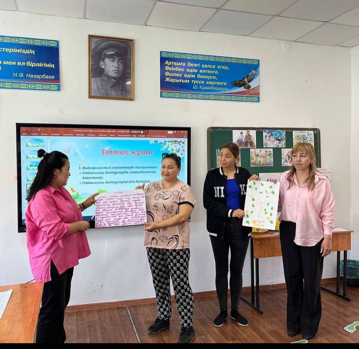 Сабақ барысында “Таңдалған әріп”, “Көңілді стакан”, “Пирамида”,” Бағыт нұсқаушы”,”Күн шуағы” атты әдіс-тәсілдерді қолдана отырып, ата-аналардың әл-ауқатын нығайту жолындағы отбасылық дәстүрлер көрсетіліп және өзара топта талдап, ойларын ортаға салып, түрлі жұмыстар орындады. Сабақ ата-аналарға ұнап, көңілдерінен шығып, өте жақсы әсер алып, кері байланыста алғыстарын білдірді.